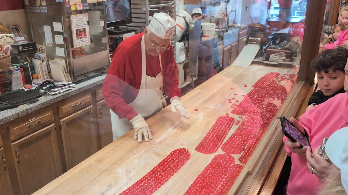 This candy shop is wonderful to visit. We learned that this shop has been owned and operated for 134 years. They have candy tours where they tell you and show you the process of candy making. At the end of the tour, you get to sample whatever it is that they showed you. Everyone who works there are very kind and helpful. They will answer your questions and help you get whatever candy your heart desires. We found out the people who gave the candy tour are the current owners Warren and Jill. They were so kind and full of life as they told their story. There is also a small Cafe inside where you can get something to eat, ice cream, and of course a wide variety of candies including chocolate. A truly awesome experience.